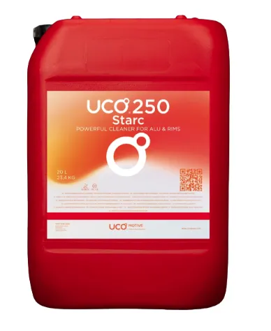 UCO®250 is a powerful hydrofluoric acid-based cleaner designed to remove mineral deposits, rust, and inorganic contamination from acid-resistant surfaces. Its fast-acting, low-foaming formula improves cleaning efficiency and delivers reliable results on surfaces such as rims and aluminum tanks.